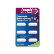 PROCOLD FLU DAN BATUK/6 TABLET/OBAT UNTUK MERINGANKAN BATUK FLU/DEMAM/BERSIN BERSIN/HIDUNG TERSUMBAT