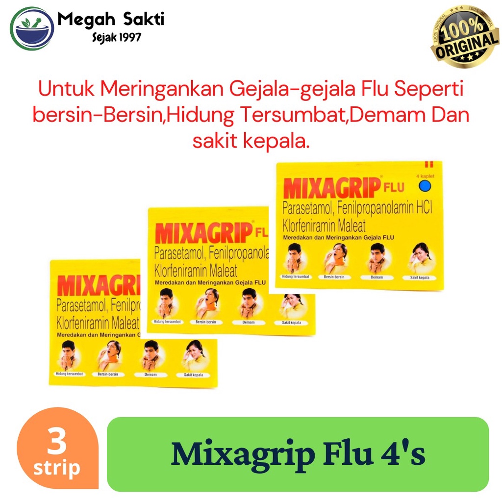 Mixagrip Flu - Obat Hidung Tersumbat dan Demam Sakit Kepala 3 strip
